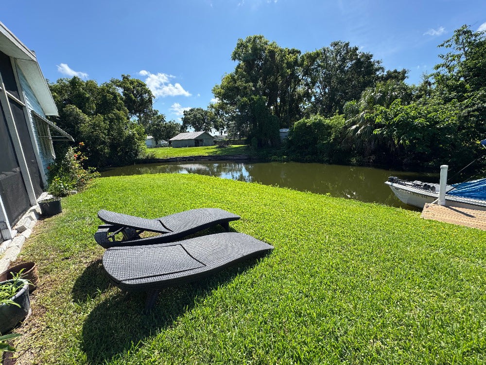 Homes in this community are on lot leased land in Winter Haven, Florida. Owning the home, but not the land, you pay a monthly lot rent of $463.00 which gives you and your guest access to the amenities of the community. Water, Sewer & trash are included in the lot fee. Also, each home has a boat slip behind it on the canal and there is no charge to use them. There is also free storage available for boats & trailers.