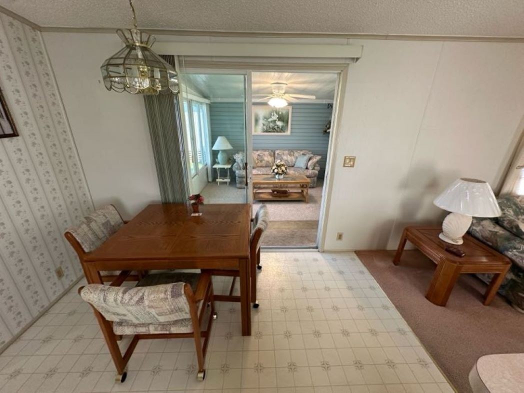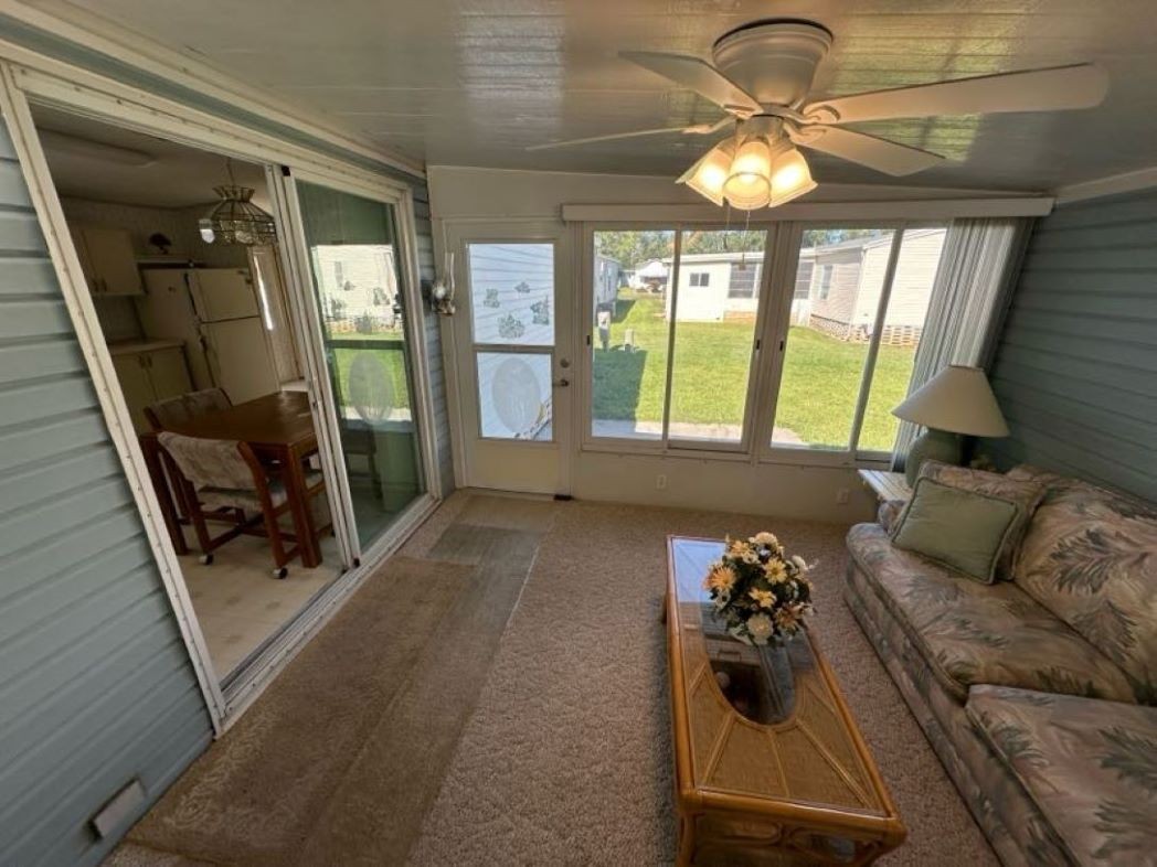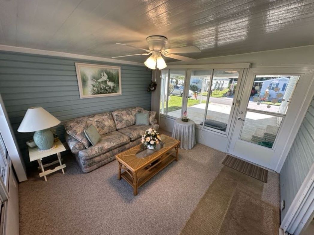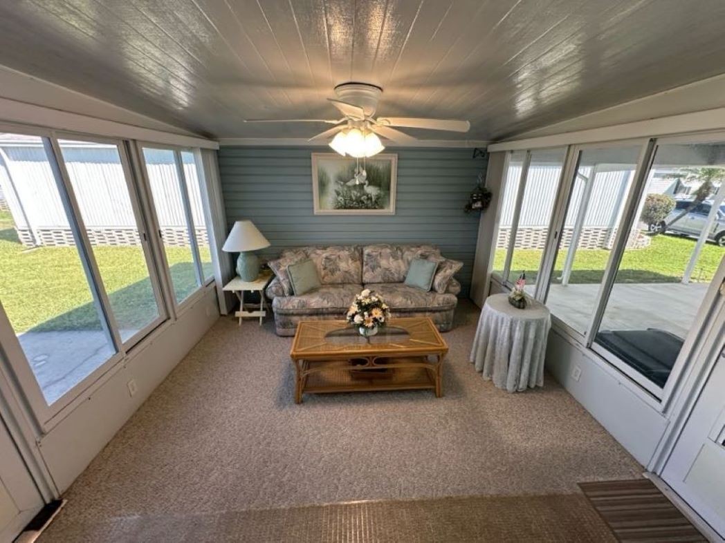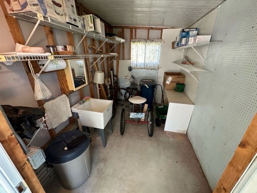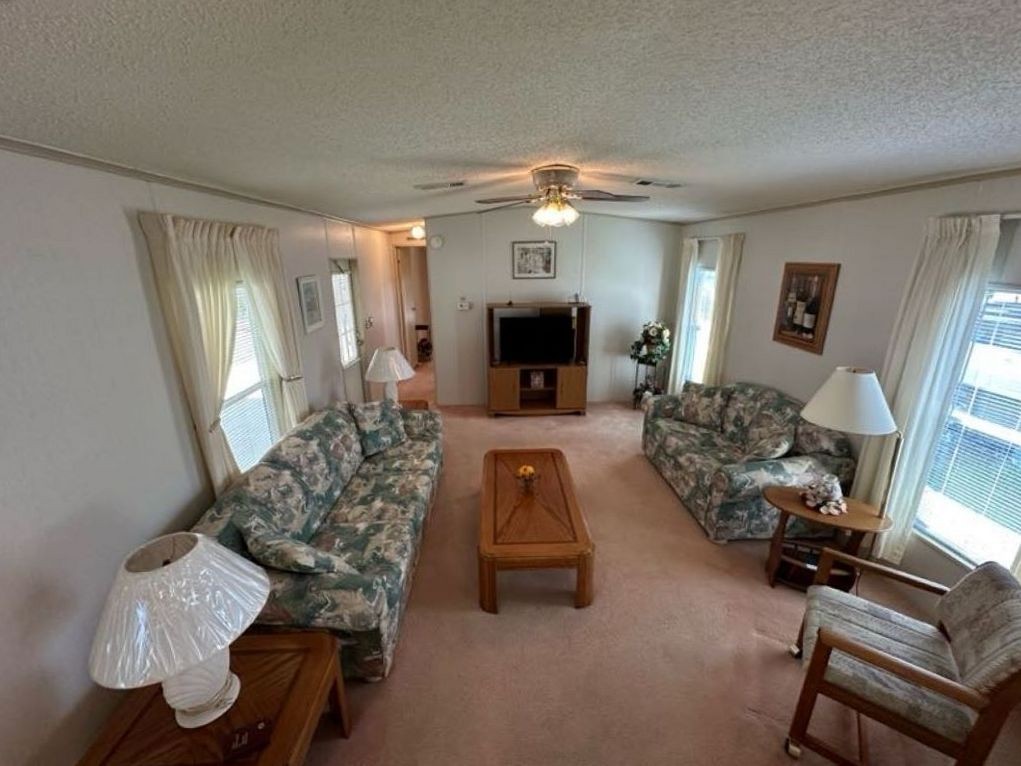 Come tour this partially furnished, nearly 1,000 sq ft home with 2 bedrooms, 2 bathrooms featuring a bight open concept, split floor plan. Enjoy a spacious eat in kitchen with plenty of cabinetry and a walk-in pantry, a welcoming living room, convenient interior laundry, and a primary suite with ensuite, linen closet, and walk in closet. Relax in the Florida room with tinted glass vertical slide windows or make use of the side by side 4 car driveway and carport. The storage shed offers built in shelving, a utility sink, and a workbench- perfect for hobbies or projects.